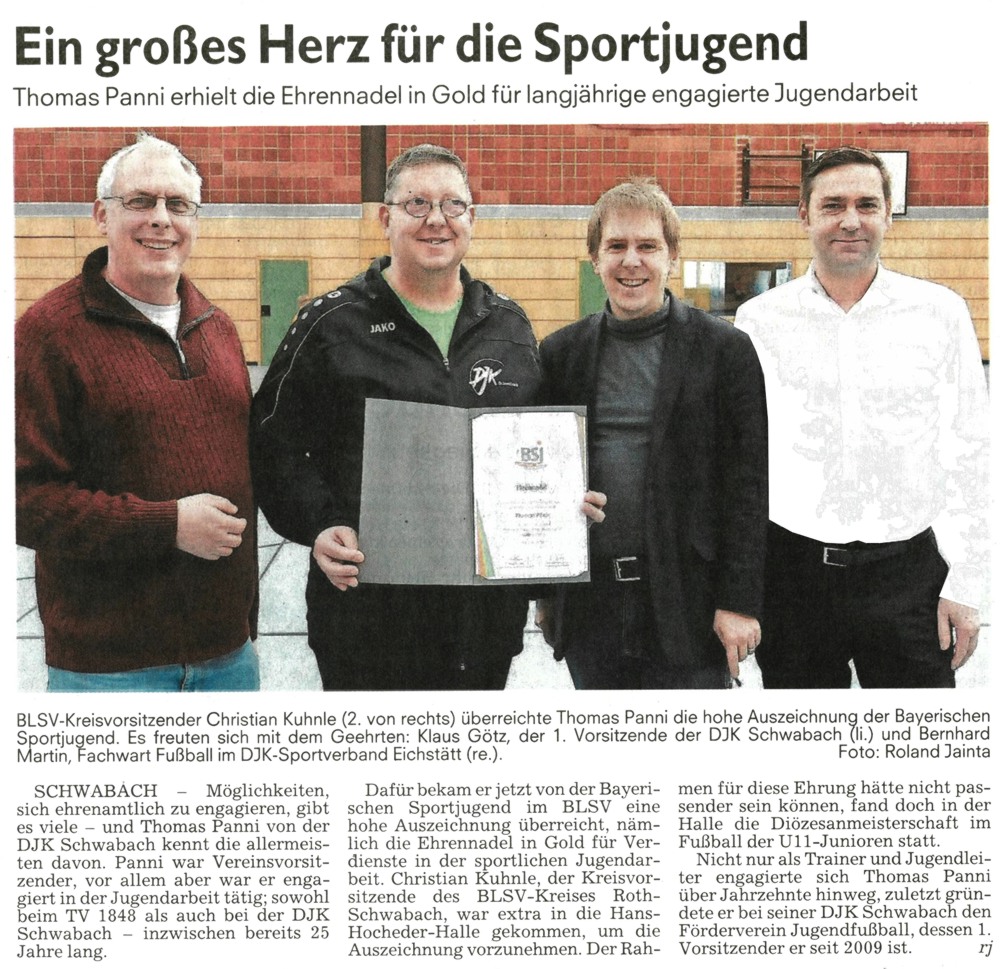Die Ehrung nahm für den DJK Verband der 2. Vorstand der DJK Schwabach Thomas Panni vor.