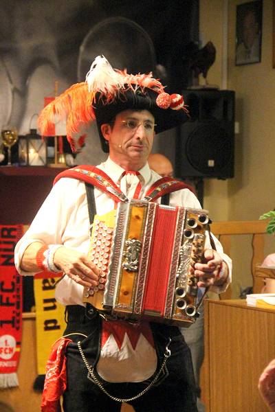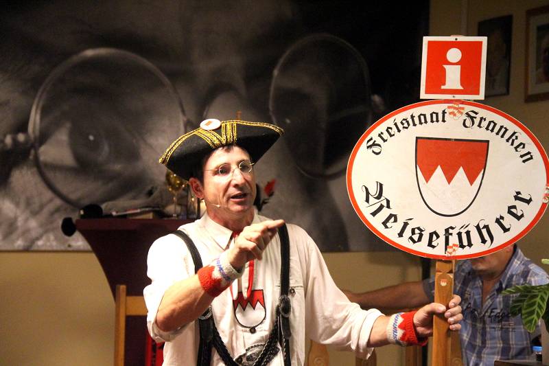 Oti Schmelzer begeisterte das Publikum im restlos ausverkauften Vereinslokal der DJK Schwabach. Eine Lachsalve nach der anderen lies Oti Schmelzer los. Seine Rollen als Fränkischer Reiseleiter, Pfarrer bei einer Wallfahrt oder seine Ansichten über Veitshöchheim waren einfach nur genial. Oti Schmelzer verstand es auch das Publikum durch Lieder und Aktionen wie z. B. das Fränkische Ärobig zum Mitmachen zu bewegen.