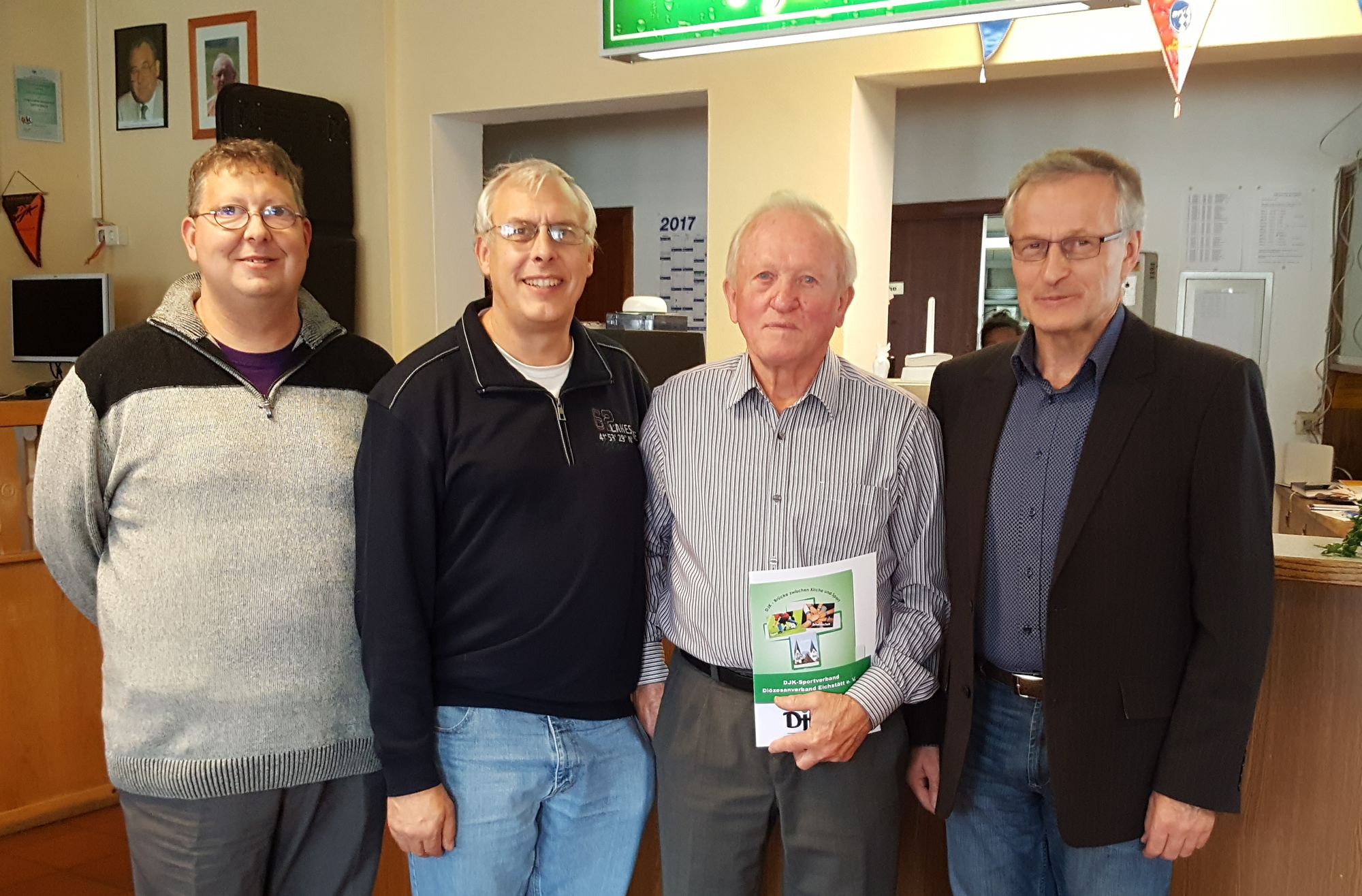 Auf dem Bild von links nach Rechts. Thomas Panni, 2. Vorstand DJK Schwabach, Klaus Götz, 1. Vorstand DJK Schwabach, Emil Luxenburger und Nikolaus Schmidt